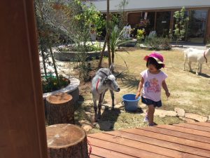 中心となる緑のスペースにはヤギさんが!